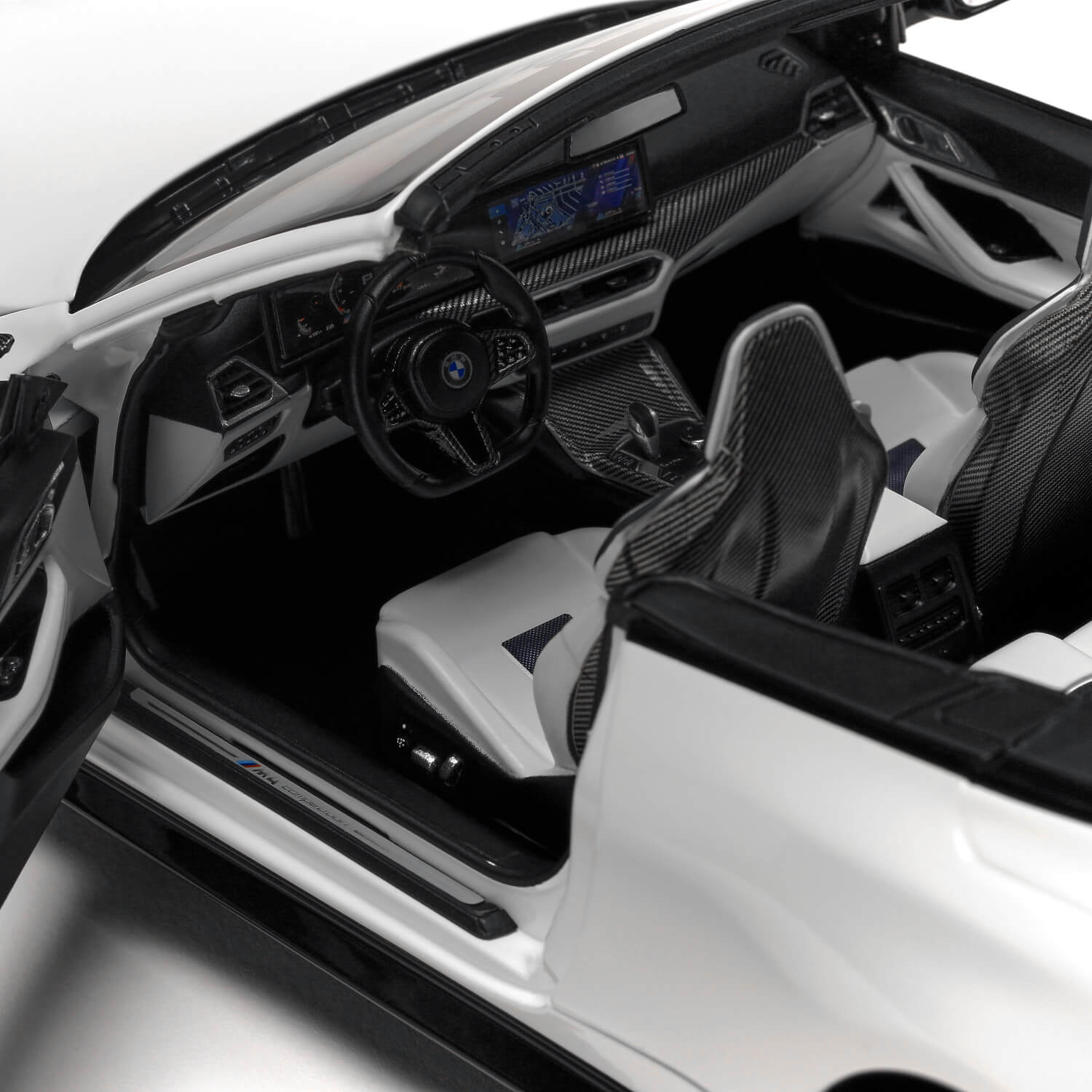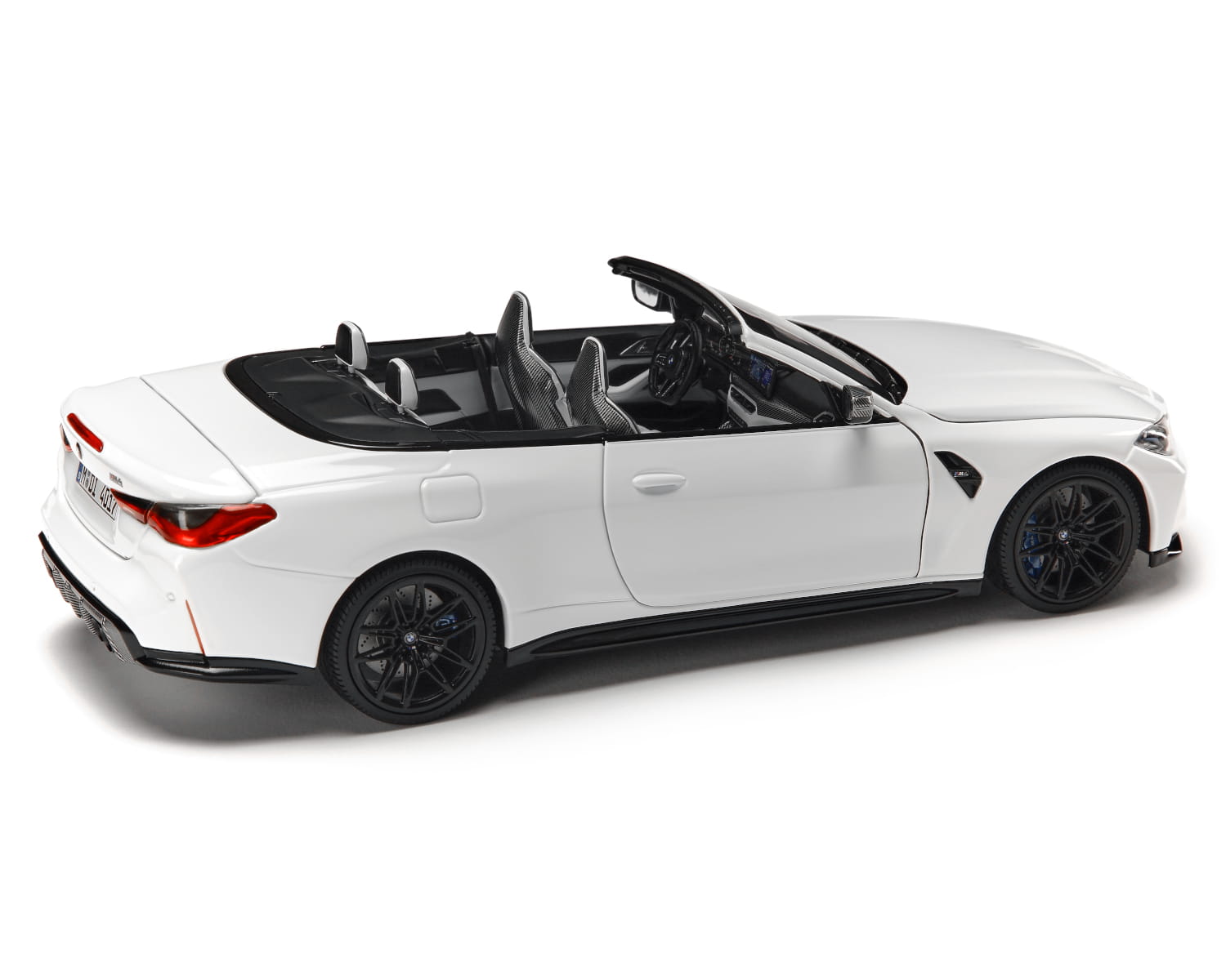 Kolekcjonerska miniatura modelu BMW M4 Competition M xDrive Cabrio LCI (G83) w klasycznym kolorze Alpin White to perfekcyjne odwzorowanie jednego z najbardziej pożądanych sportowych kabrioletów BMW. Model wykonany w skali 1:18 zachwyca precyzją detali, proporcji oraz jakością użytych materiałów.