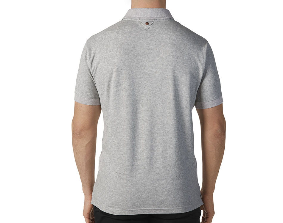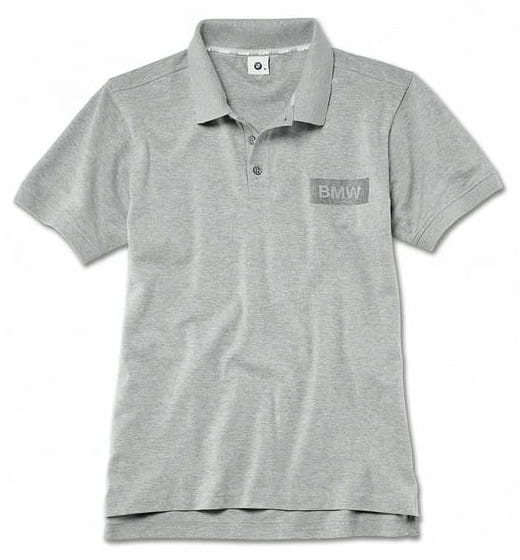 Szara koszulka polo ze sportowym brandingiem BMW na piersi. Listwa na guziki z ozdobnym paskiem w kolorze ciemno szarym. Przyjemne uczucie podczas noszenia dzięki delikatnej bawełnie pima. Tył z naszytym trójkątem z nitem z logo o szlachetnym wyglądzie miedzi.