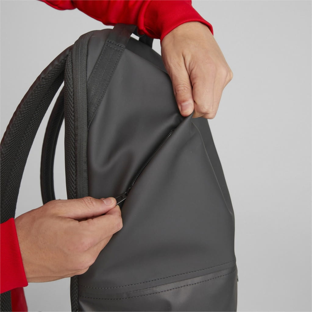 Ten plecak o czystym i nowoczesnym wyglądzie został wykonany z najwyższej jakości materiałów, gwarantujących trwałość i komfort użytkowania. Jego wyjątkowy design podkreślają odblaskowe, metaliczne logo Ferrari oraz metaliczne logo Puma, które nadają mu sportowy charakter.