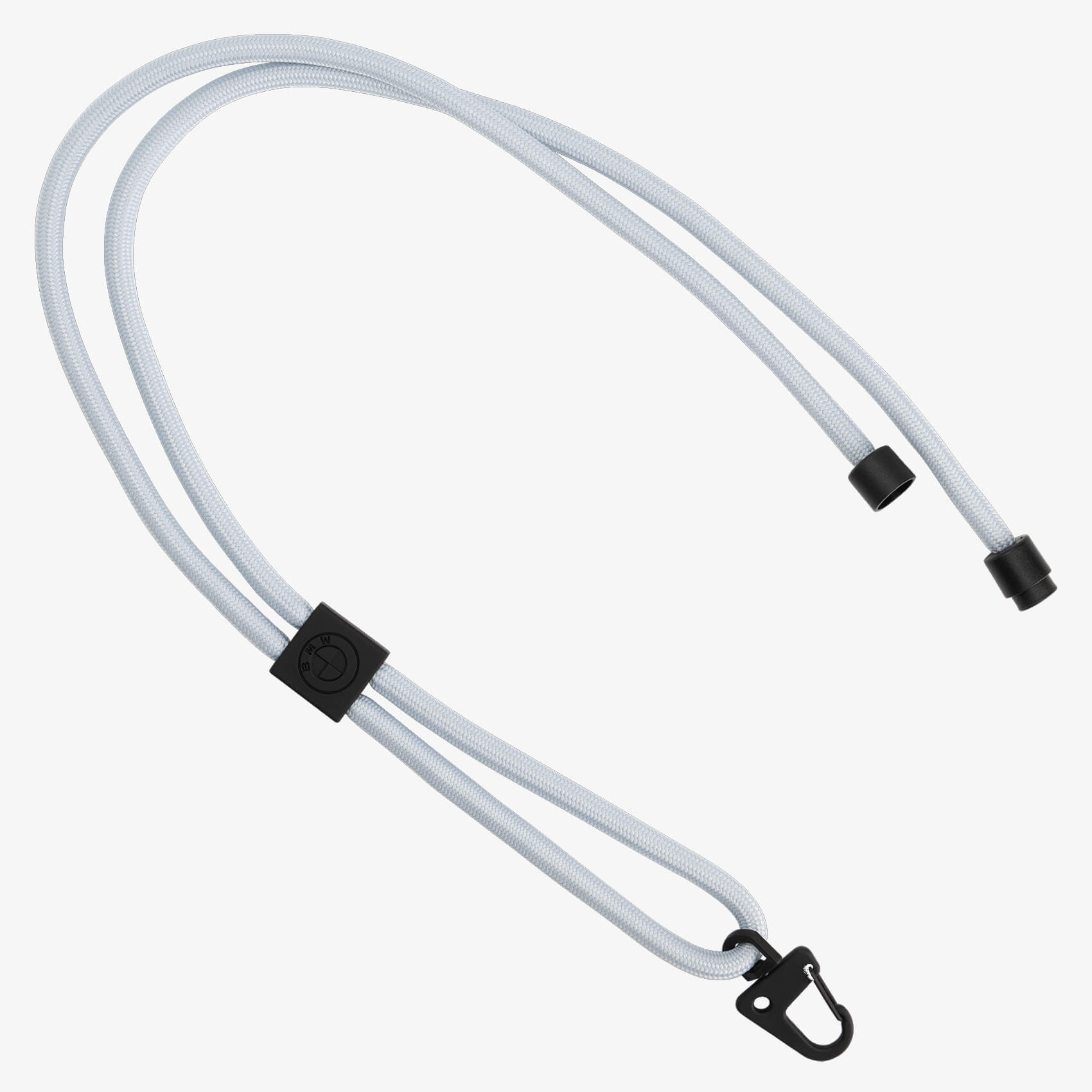 Na końcu smyczy znajduje się solidny, czarny karabińczyk, który zapewnia bezpieczne mocowanie przedmiotów i jednocześnie dodaje całości minimalistycznego, funkcjonalnego charakteru.